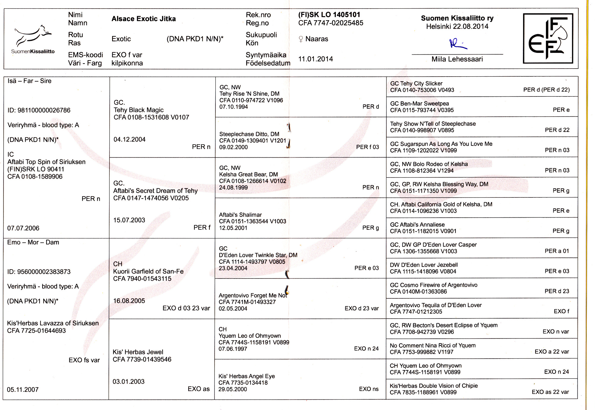 EC Siriuksen Exotic Åbelix x EC N*Con Brio´s Nin-O-Silver-Nuts