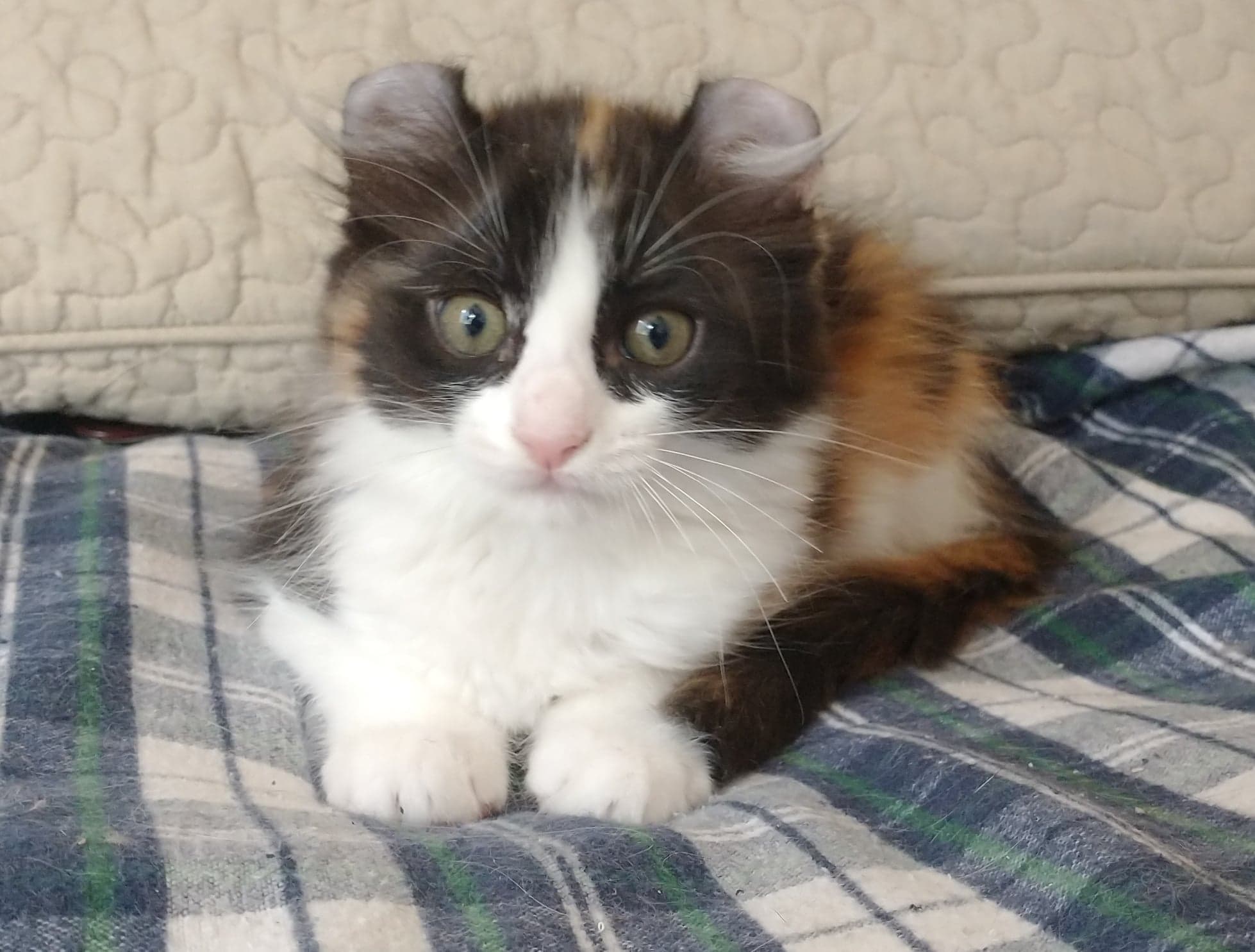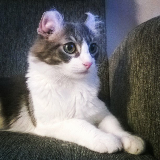 bicolour American curl longhair female DOB 4.4.08